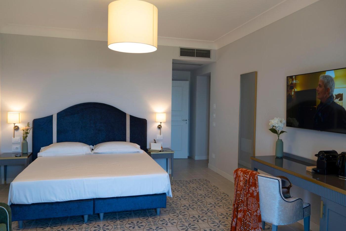Camera Matrimoniale Deluxe con Balcone e Vista Mare. Camera matrimoniale dotata di aria condizionata, minibar, balcone con vista mare e bagno privato con doccia. Numero di letti disponibili: 2. ;
