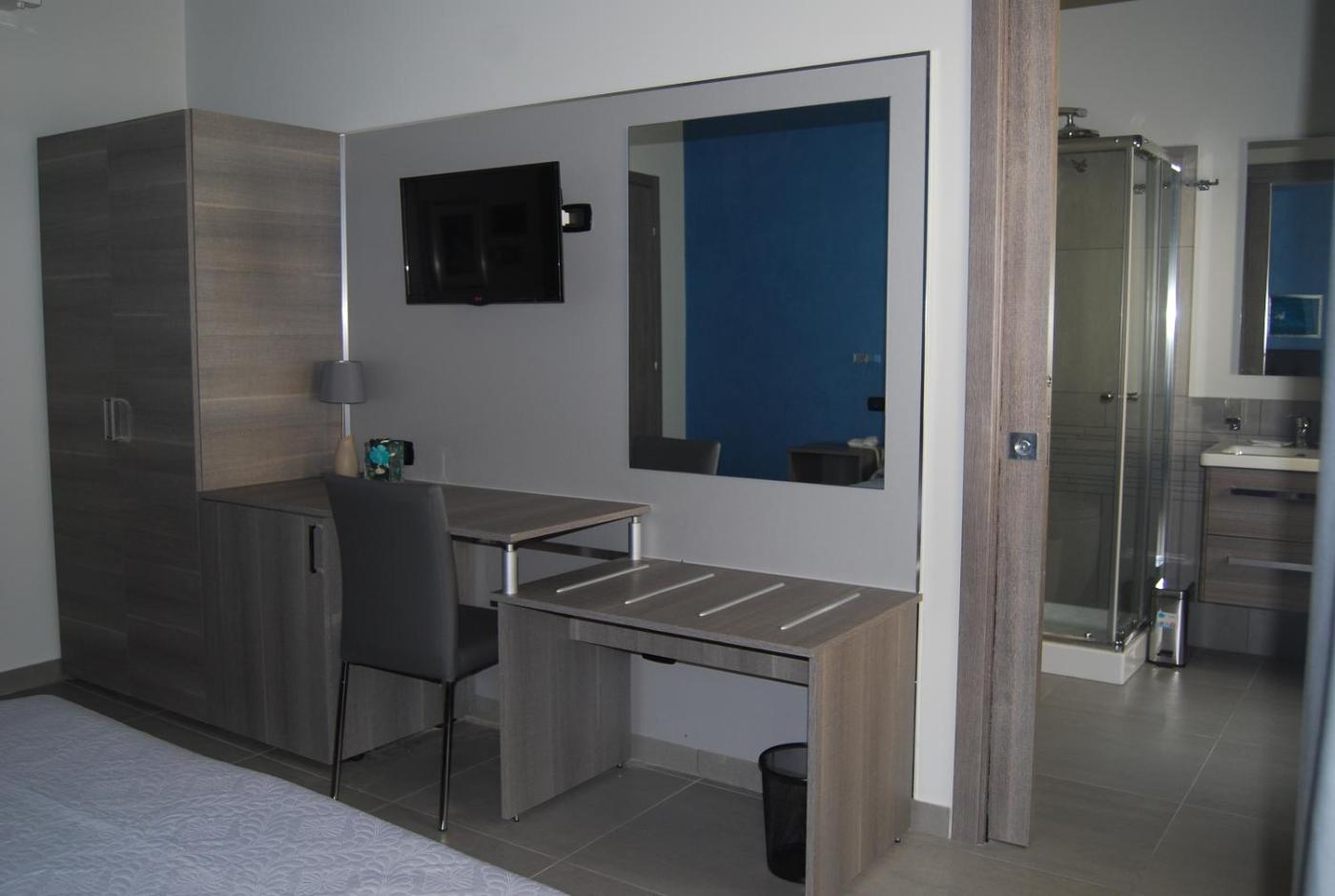 Camera Deluxe MatrimonialeDoppia con Letti Singoli. Guests can make meals in the kitchen that features a refrigerator, a microwave and an electric kettle. This air-conditioned twindouble room is comprised of a flat-screen TV with streaming services, a private bathroom as well as a terrace with city views. The unit has 2 beds. ;