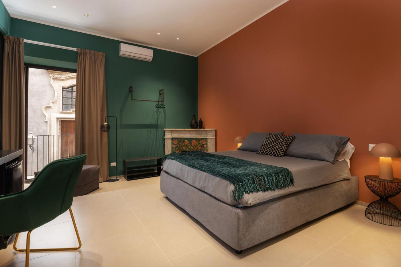Camera Matrimoniale con Bagno Privato. Camera matrimoniale climatizzata dotata di TV a schermo piatto con servizi streaming, bagno privato e balcone con vista sul cortile interno. La sistemazione dispone di 1 letto. ;
