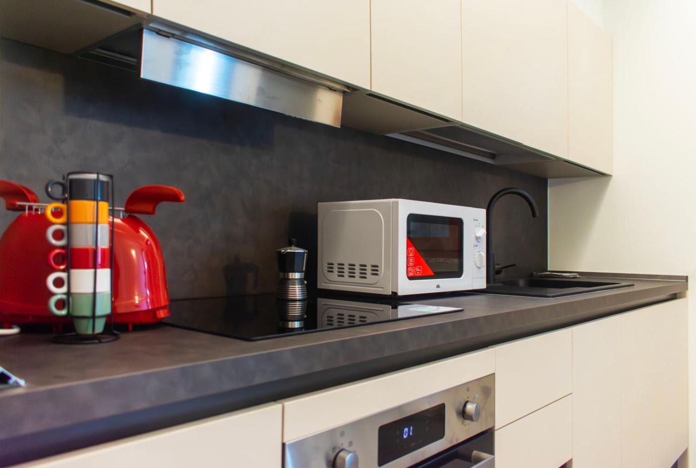 Questo appartamento con aria condizionata comprende 1 camera da letto, un soggiorno, una cucina con utensili, frigorifero e bollitore elettrico, e 1 bagno con bidet e doccia. Presso questo appartamento troverete asciugamani e lenzuola a disposizione.