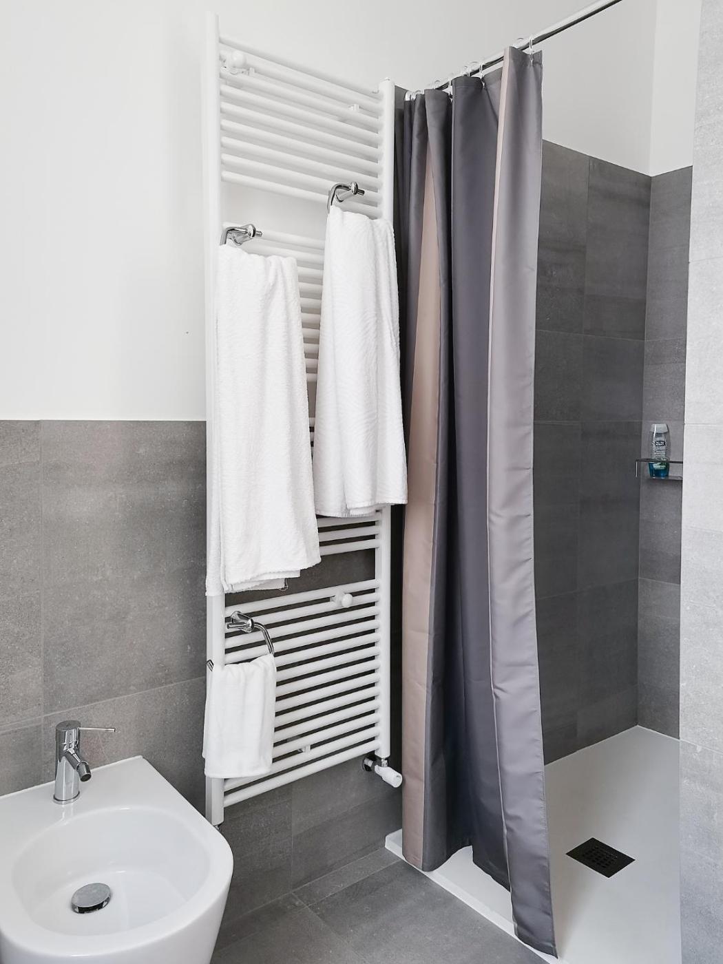 In tutti gli alloggi è presente un bagno privato con doccia,di cortesia e asciugacapelli.