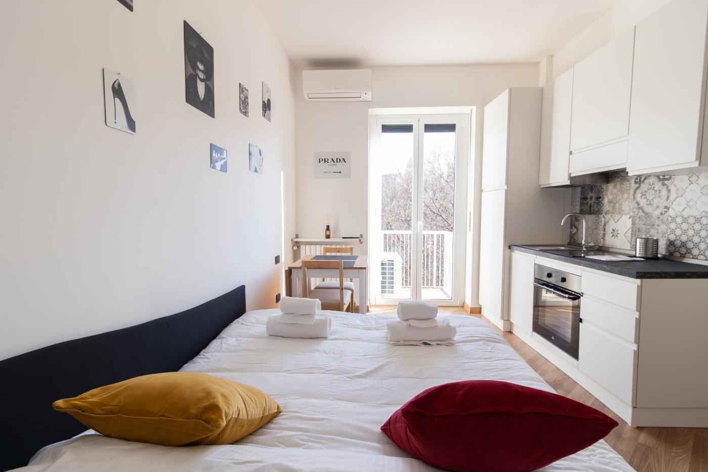 Monolocale Standard. Guests can make meals in the kitchen that features a stovetop, a refrigerator, kitchenware and an oven. The studio features air conditioning, a washing machine, a balcony with city views as well as a private bathroom boasting a shower. The unit has 1 bed.