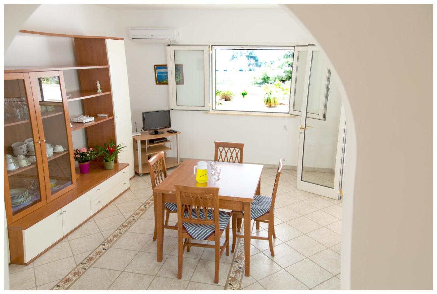 Appartamento con Vista Mare. Appartamento climatizzato composto da un ingresso indipendente, 1 soggiorno, 2 camere da letto separate e 1 bagno con doccia a filo pavimento e bidet. La cucina è ben attrezzata con piano cottura, frigorifero, utensili e forno. In loco potrete usufruire di un barbecue. Questa sistemazione è dotata di lavatrice, TV satellitare a schermo piatto e terrazza con vista sul mare. L’alloggio presenta 3 letti. ;