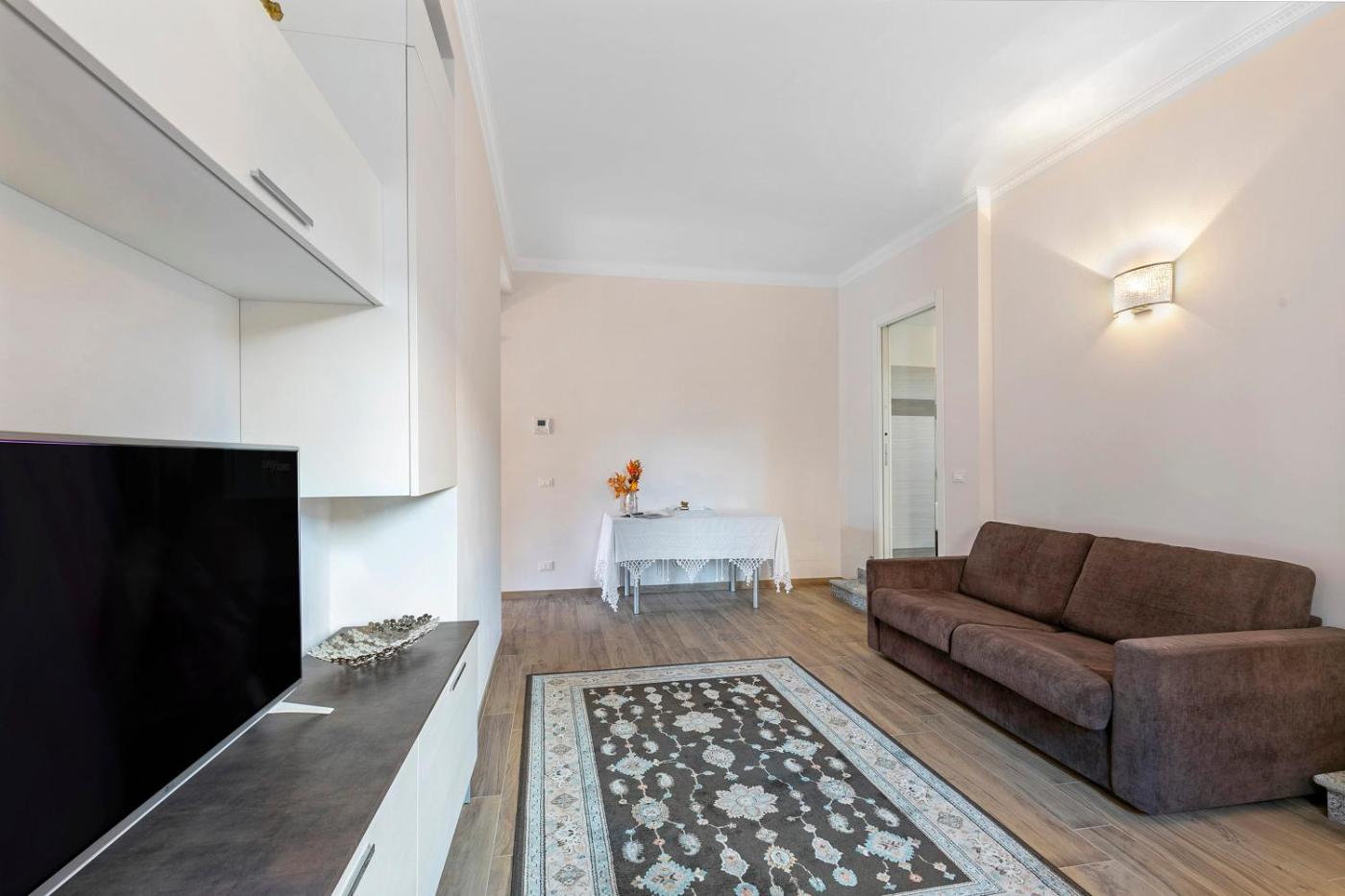 Questo appartamento comprende 1 camera da letto, un soggiorno, una cucina con utensili, frigorifero e bollitore elettrico, e 1 bagno con bidet e doccia. Presso questo appartamento troverete asciugamani e lenzuola in dotazione.