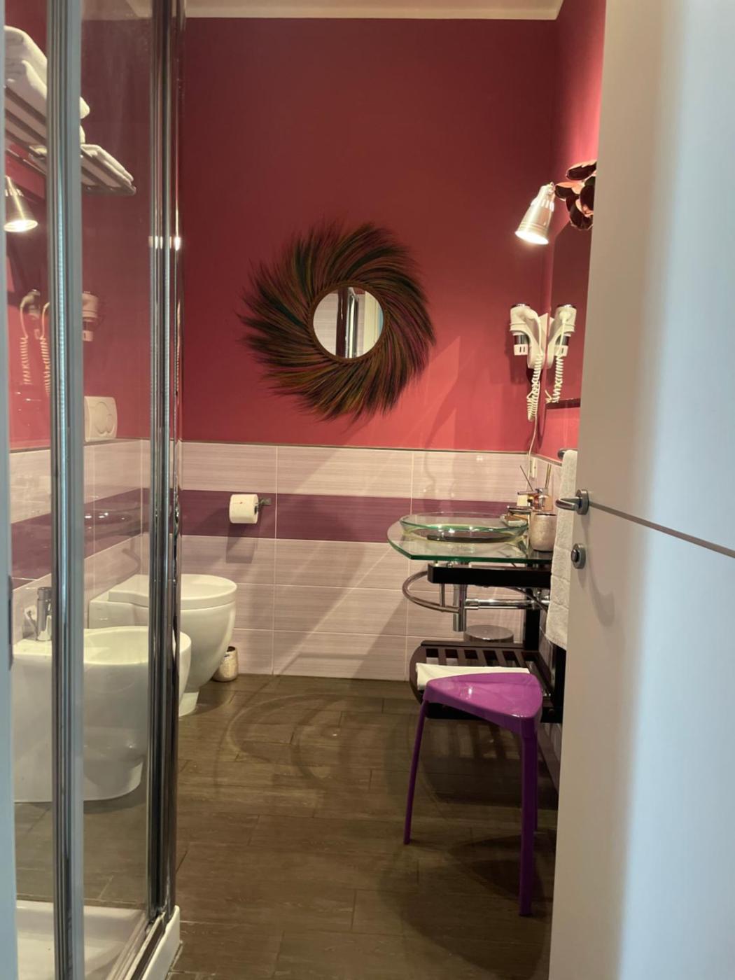 Camera Deluxe MatrimonialeDoppia con Letti Singoli. Featuring free toiletries, this twindouble room includes a private bathroom with a shower, a bidet and a hairdryer. The air-conditioned twindouble room features a flat-screen TV with cable channels, a private entrance, a minibar, a tea and coffee maker as well as city views. The unit has 3 beds.